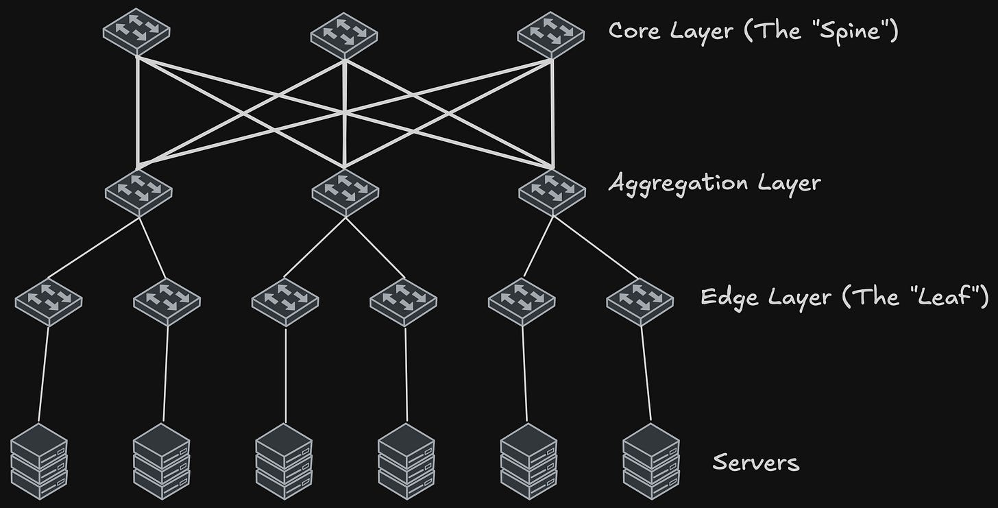 When talking about performance, it’s also important to cover physical network topologies. The Fat Tree (Folded Clos) is the standard topology for HPC clusters because, when built without oversubscription, it delivers near-full bisection bandwidth. Its multiple equal-cost paths allow routing to spread load and avoid hotspots. This structure makes the entire cluster behave like a single, massive switch rather than a loose collection of bottlenecked cables. This is also why InfiniBand is often described as a “fabric”, since high path redundancy and unified management make the network operate as one system.